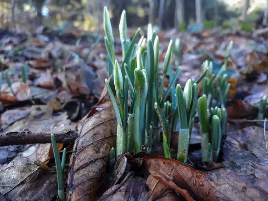 Er broeit iets. De laatste weken trekken kleine signalen in de natuur mijn aandacht. Er is iets op til. De vinkenmannen in onze tuin lijken meer kleur te krijgen. De koolmezen meer contrast. In de vijvers van het Haagse Bos zie ik het zeker bij de eenden. De slobeenden gloeien bijna roodbruin, de smienten geel, de tafeleend brand prachtig grijs net als de krakeenden. Er is nu geen twijfel meer wie man of vrouw is. En alsof om dat te bevestigen cirkelen ze voortdurend om elkaar heen of zwemmen ze onafscheidelijk rond. En als de vogels in hun gedrag en kleur signalen beginnen af te geven wordt het tijd om het bruine bladerdek op de bodem van het bos in de gaten te houden. Want ook onder de grond moet er toch onrust zijn en is er verlangen naar de lente.